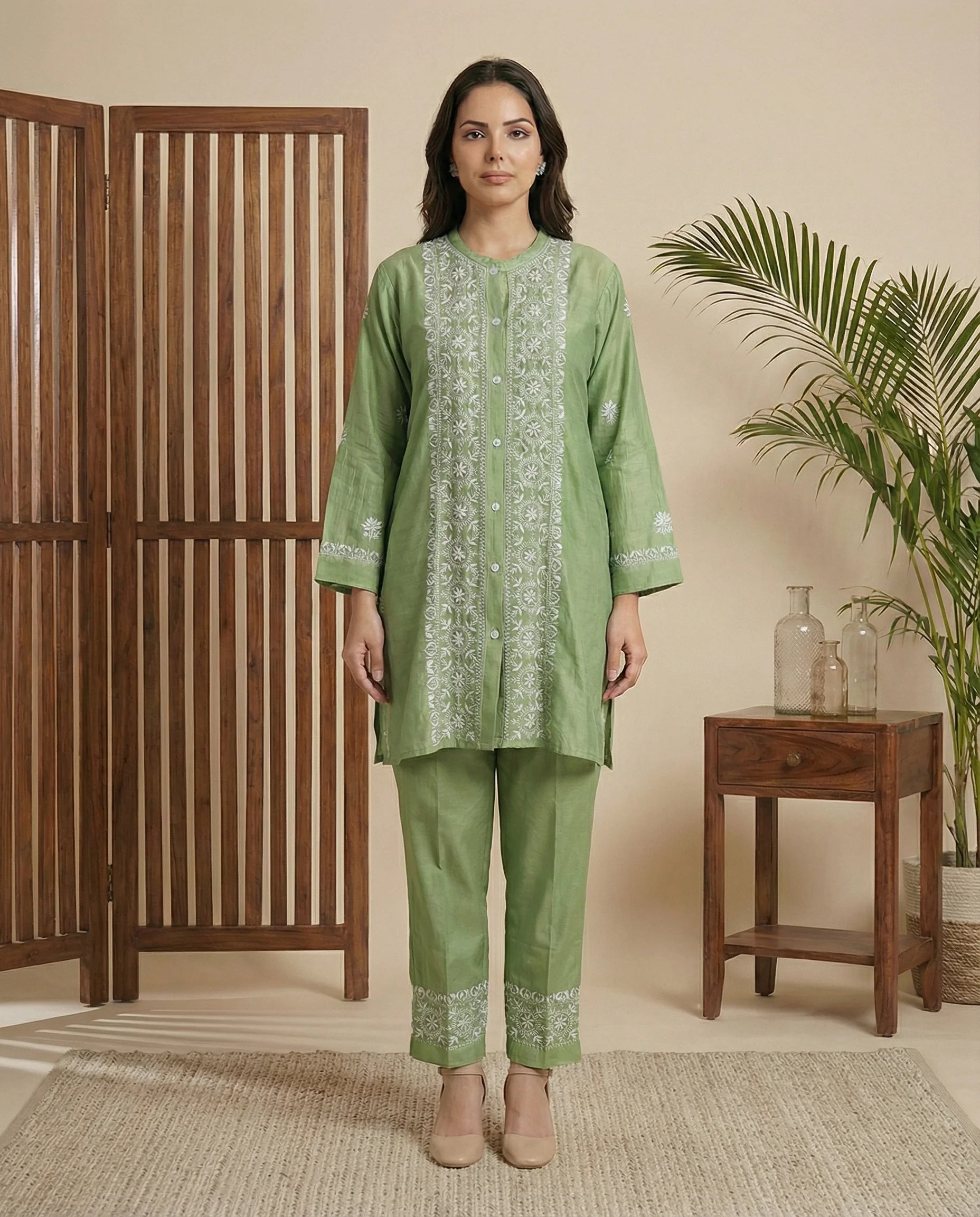 Artistry: Features intricate handcrafted Chikankari work, designed to stand out as a unique artisanal piece.