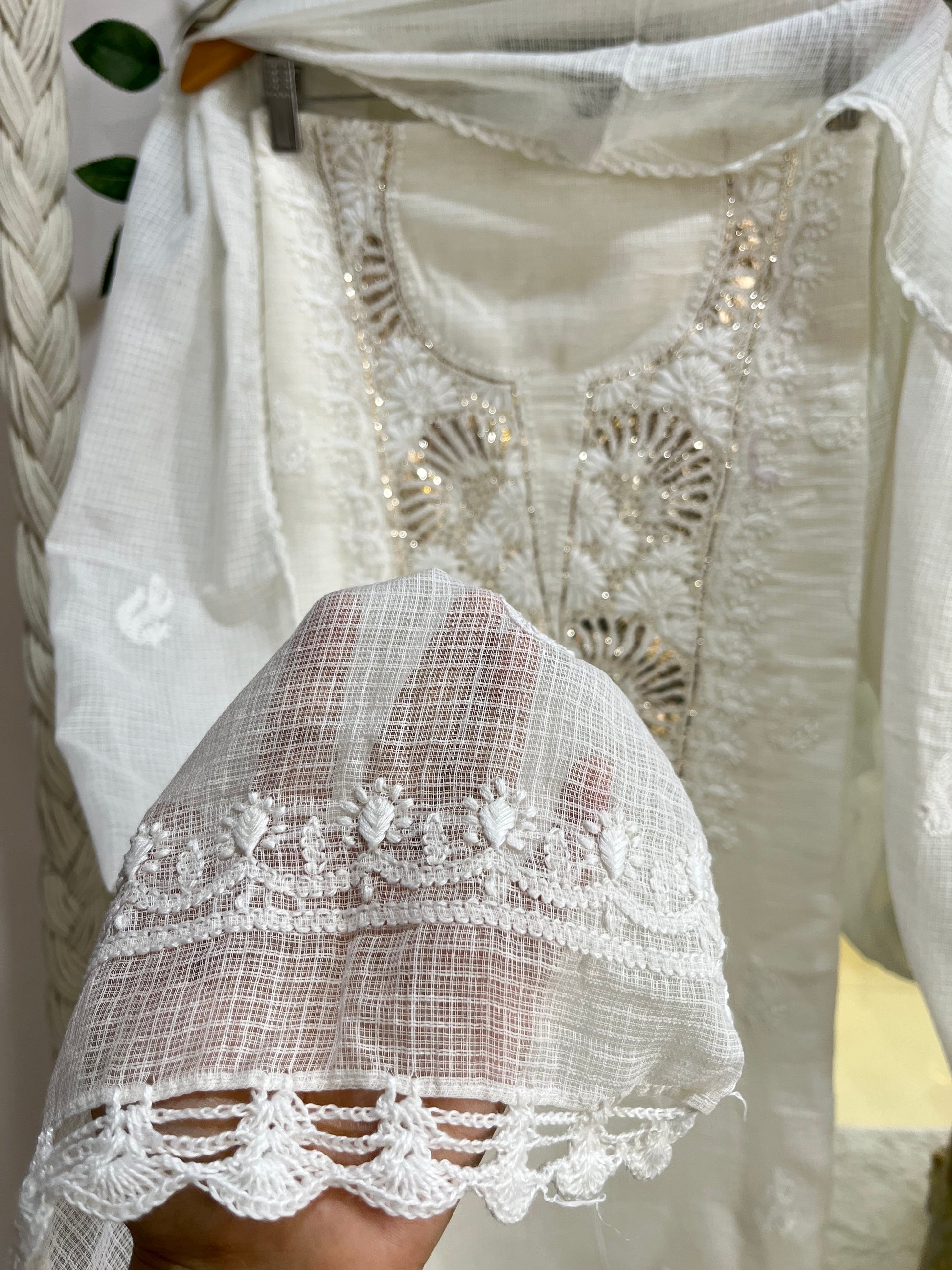 Pure Kota Doria Unstitched Suit Set with Intricate Chikankari