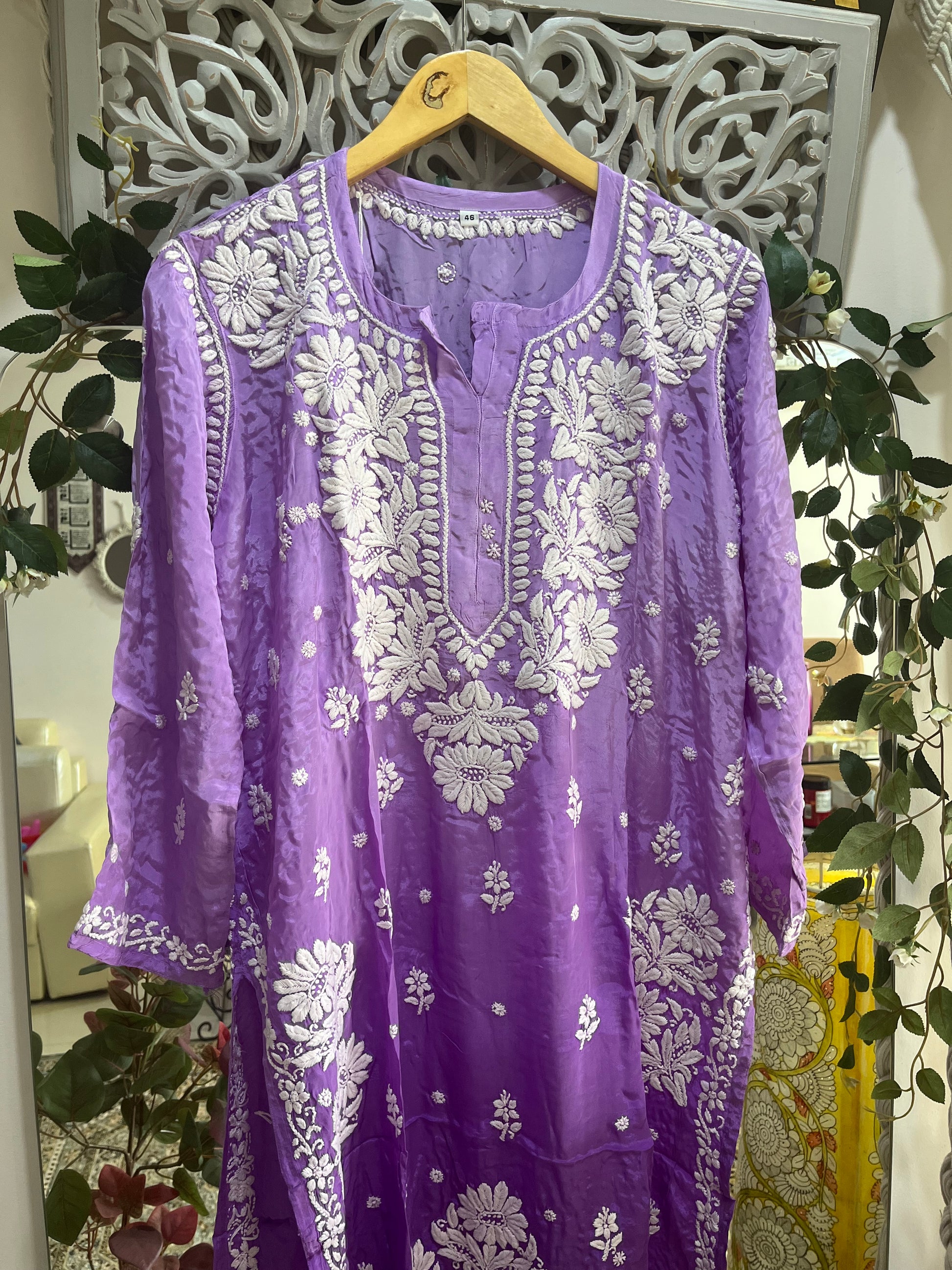 Sarah crape kurta is expertly handcrafted with intricate 3d chikankari work, adding unique dimension and texture to its elegant crape fabric. With a length of 46 inches, this kurta offers a comfortable and stylish fit for any occasion.